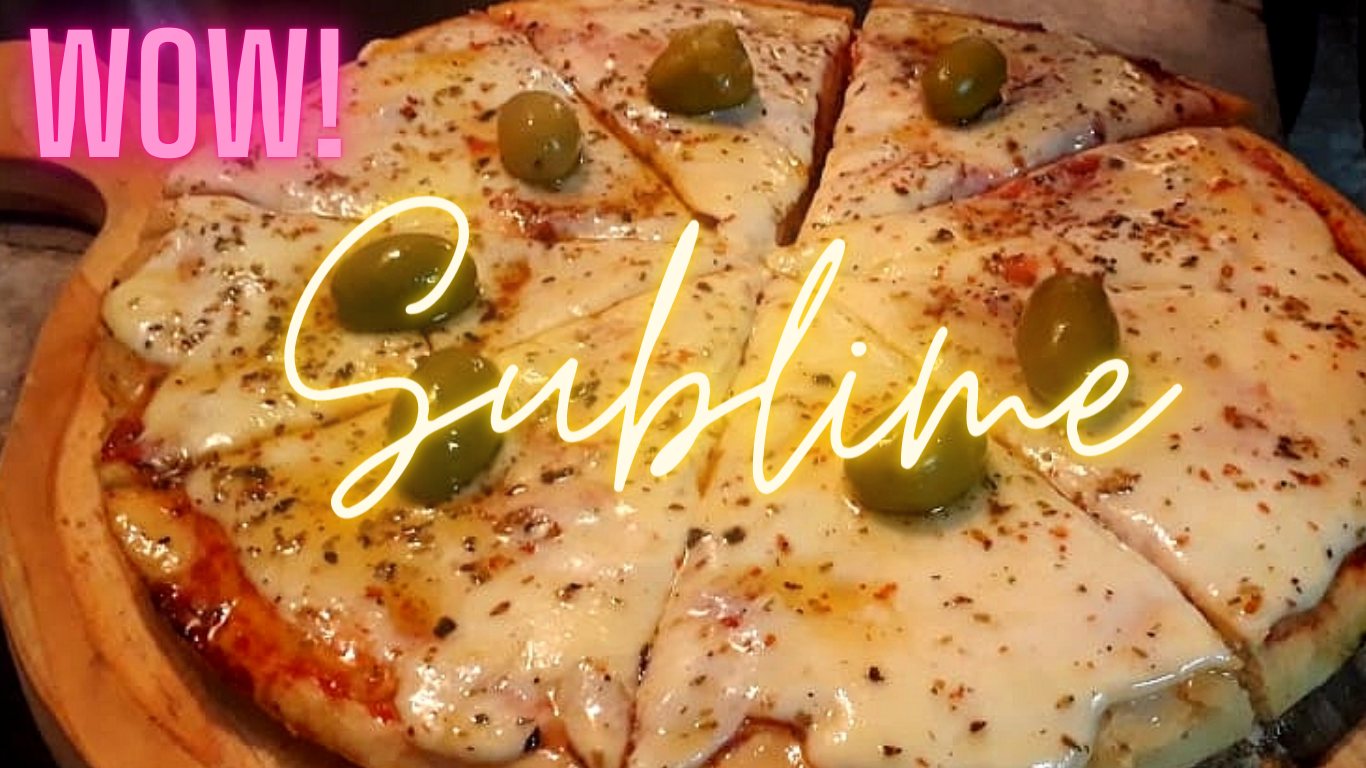 - Pizza especial de Muzzarella con salsa de tomate, muzzarella, orègano y aceitunas